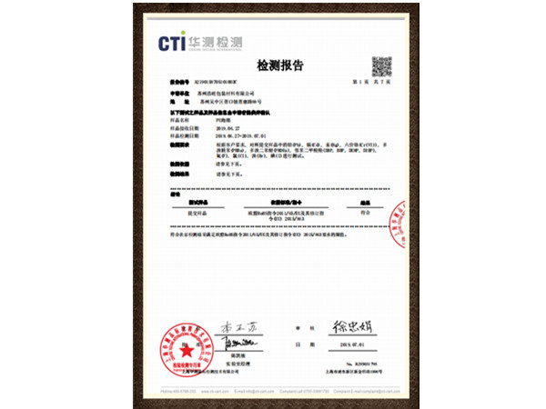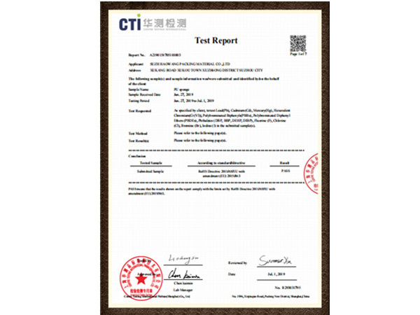 海绵英文检测报告